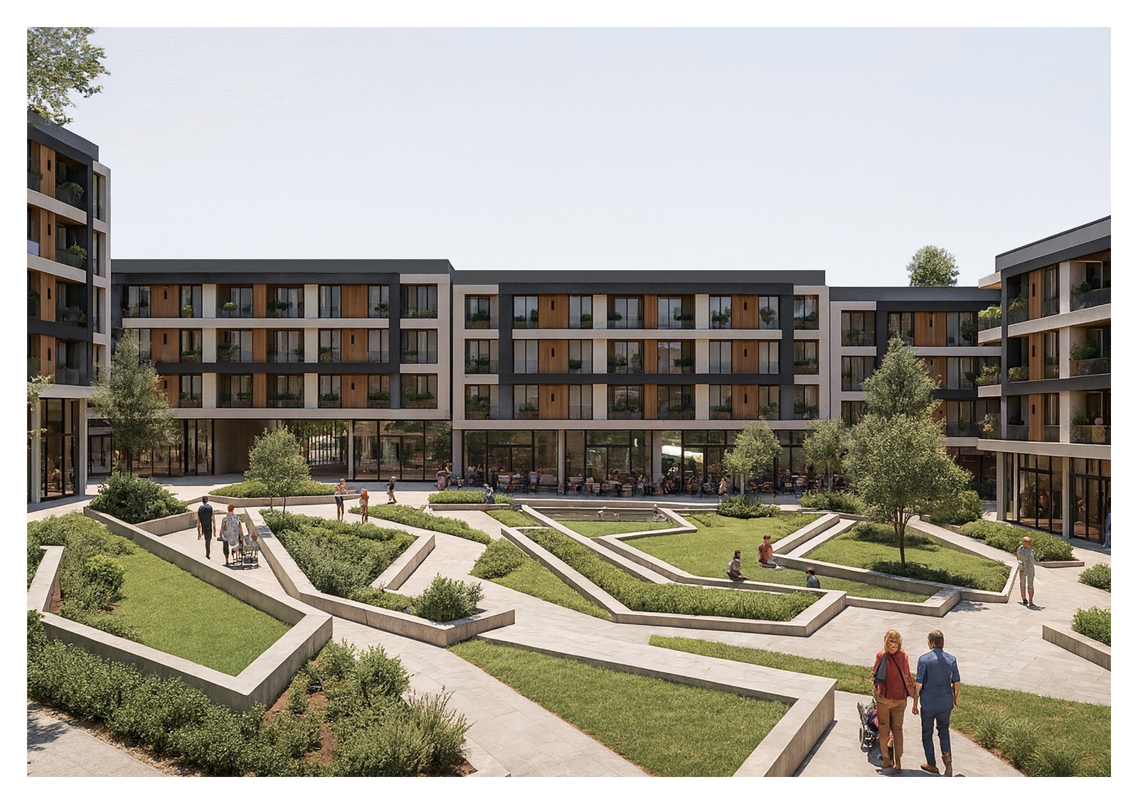 Visualisez les espaces communs, la disposition des immeubles et l’harmonie du design architectural avant même votre visite.